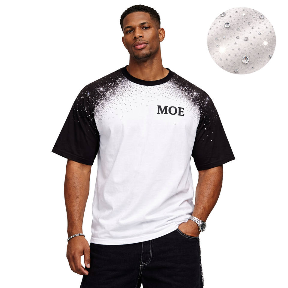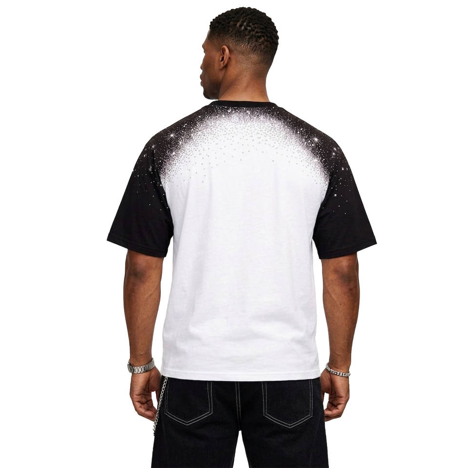 Camisetas de hombre de algodón de moda con manga raglán, diseño degradado con pedrería, de peso pesado, corte holgado y estilo urbano, OEM