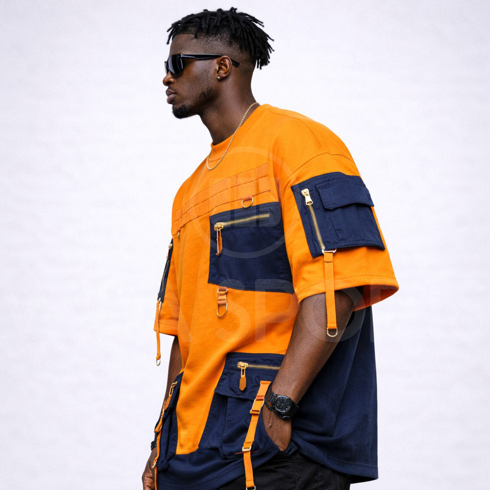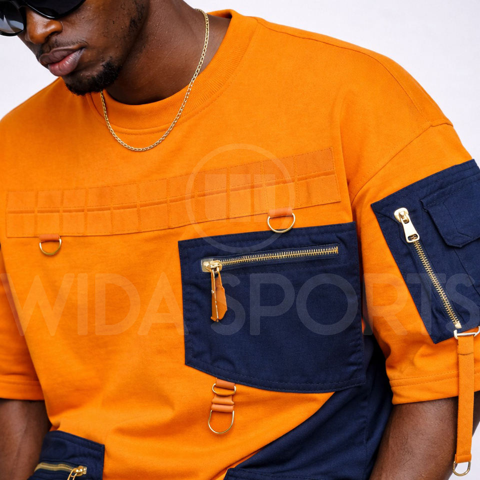 Camiseta Táctica de Moda Personalizada con Múltiples Bolsillos, Estilo Urbano, Oversize, para Hombre, Ropa Táctica OEM