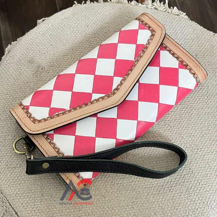 Nombre del producto:Cartera de mano de cuero repujado a cuadros