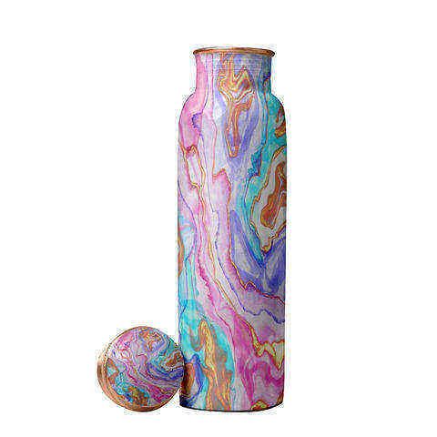 Botella de Agua de Cobre Puro de Doble Pared con Diseño Moderno Personalizado y Estampado en Esmalte para Niños, Escuela, Yoga y Oficina