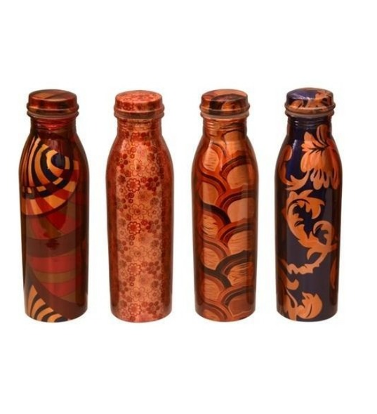 Botella de Agua de Cobre Puro con Diseño Moderno y Estampado en Esmalte, Color Oro Rosa, 4 Piezas, Nueva Artesanía