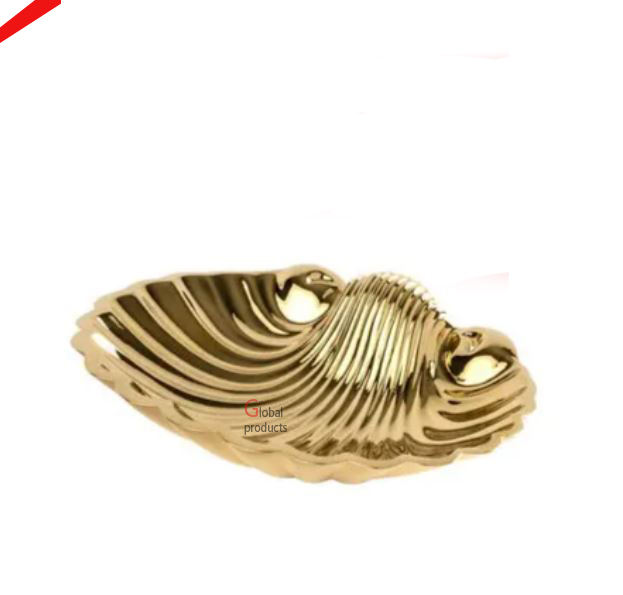 Plato de servicio de diseño de carcasa de metal con acabado dorado brillante de diseño de tendencia para hotel en casa