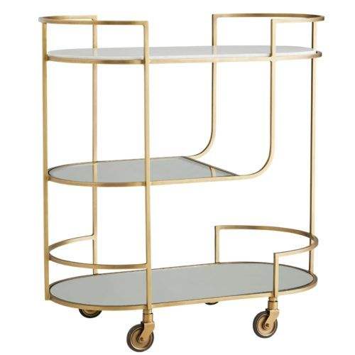 Trending Design Three Tier Metal y Glass Food Serving Trolley Nueva llegada Premium Quality Bar Cart Color dorado hecho a mano