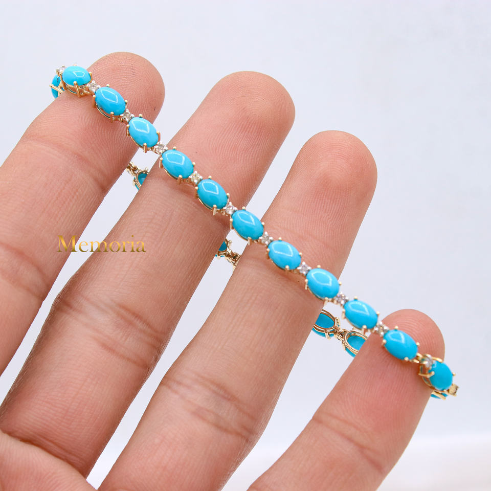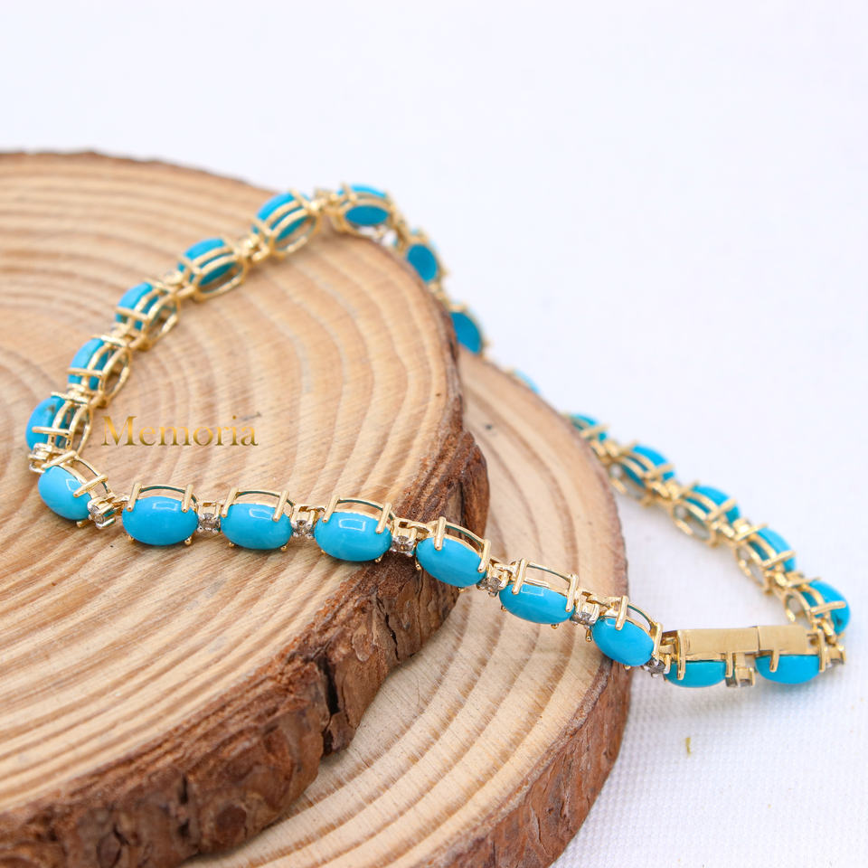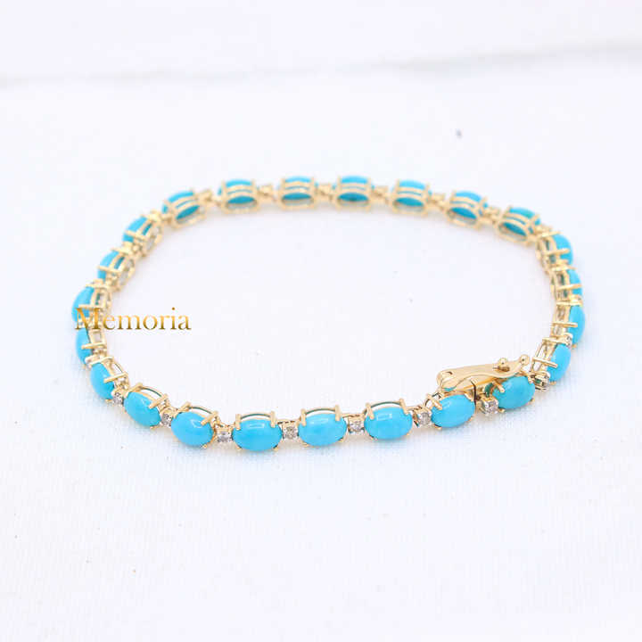 Pulsera de oro de tendencia, oro amarillo de 14K con piedras preciosas turquesas naturales y pulsera de diamantes para mujer, joyería a precio mayorista