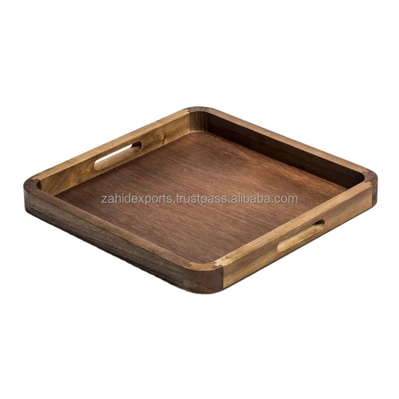 Trending Gold Polish Tea & Snack Service Bandeja de metal Bandeja de decoración hecha de madera Zahid Exports India Espejo de acero inoxidable