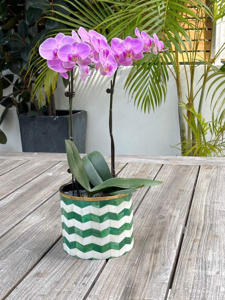 Trending Green and White Bone Inlay Zig Zag Design Home Interior Precio económico Flores y plantas decorativas Maceta