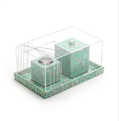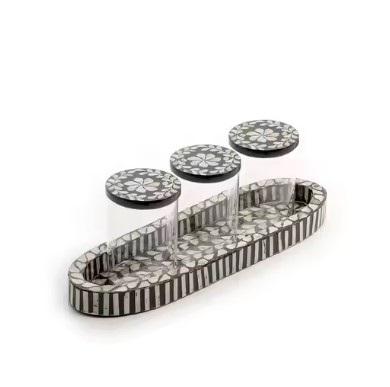 Trending hecho a mano madre perla cuadrado rectángulo Bandejas para servir conjunto arte moderno patrón de flores bodas decoración de Navidad hecho India
