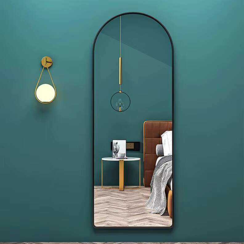 Espejo de Pie de Tamaño Completo con Marco Plateado, a Prueba de Explosiones de 4 mm, Estilo Art Deco Minimalista, Mueble Personalizado para el Hogar