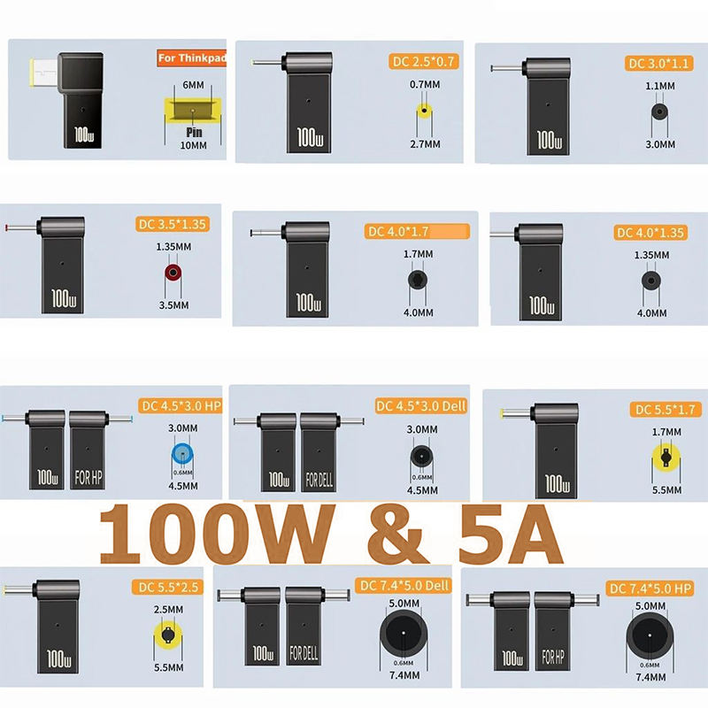 Adaptador de Corriente USB-C Tipo C de Carga Rápida de 100 W, Convertidor de Cargador para Computadora Portátil HP Dell Think Notebook