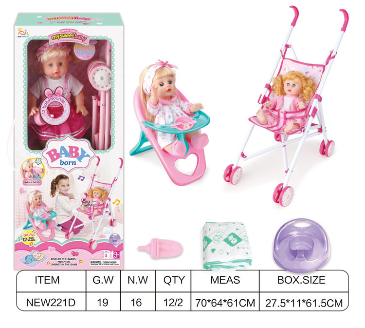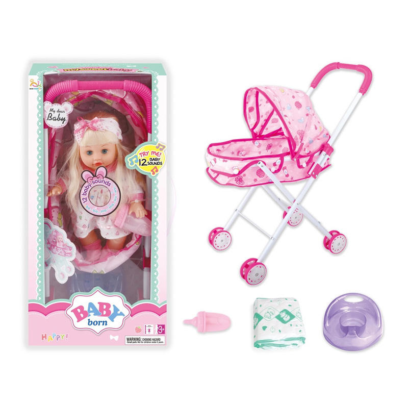 Detalles del embalaje:Productos calientes de tendencia 14 pulgadas 12 sonido inglés Ic agua muñecas de bebé con lavabo de orina pañal carrito de biberón para niños niñas Juguetes