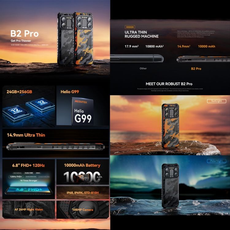 Trending IIF150 B2 Pro Rugged Phone, 12GB + 256GB, Huella Digital lateral, visión nocturna, 6,78 pulgadas Android 13 MTK Helio G99 Octa Core