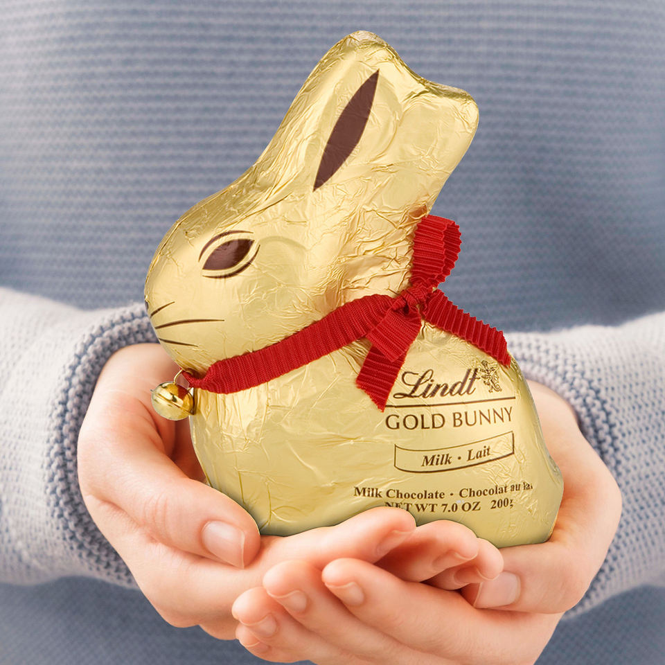 Chocolate Lindt Gold Rabbit 200g, Elegante Conejito de Chocolate Suizo, Regalo de Moda, Chocolate de Primera Calidad