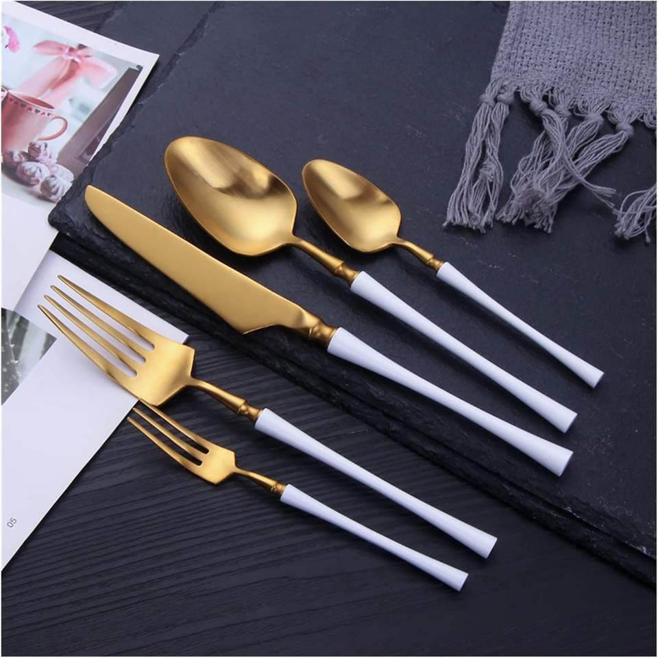 Juego de cubiertos de metal de tendencia con asas redondas de esmalte blanco chapado en oro para mesa de comedor de boda juegos de cubiertos para comer comida