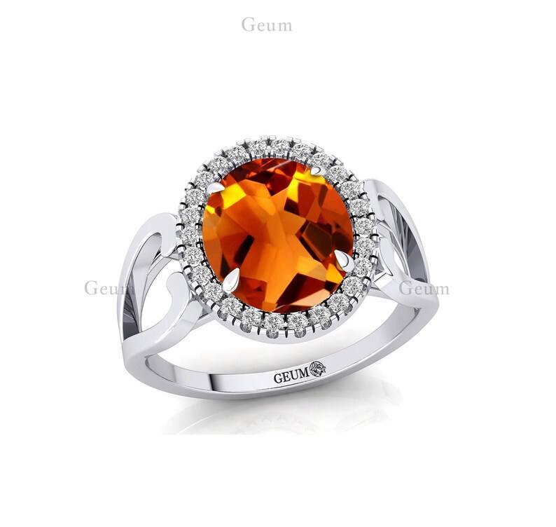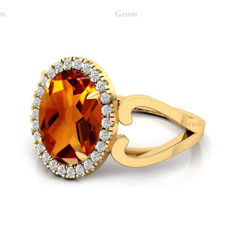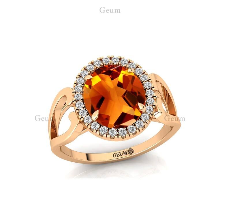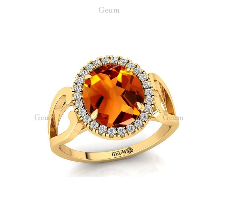 Nombre del producto:Anillo de Oro con Diamante y Gema de Citrino