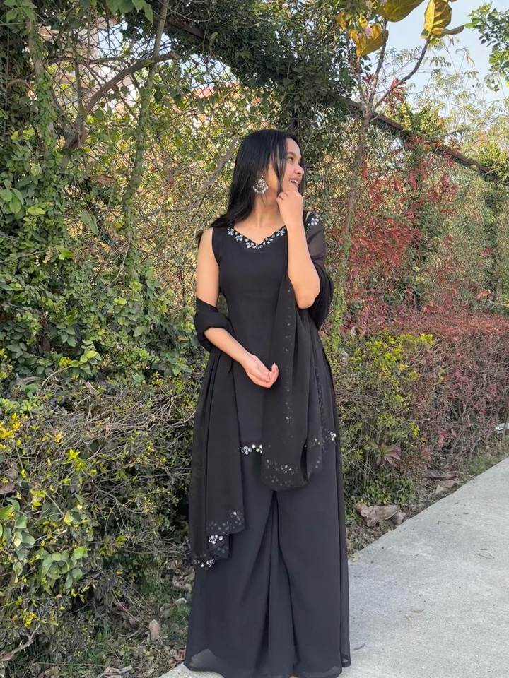 Top de color negro de nuevo diseñador de tendencia-Colección Palazzo, telas de seda Georgette con trabajo de espejo Real para mujer, ropa de fiesta
