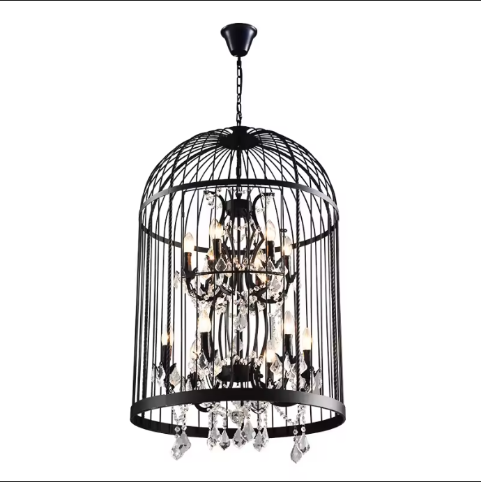 Soluciones de iluminación de servicio:Iluminación y circuitos de diseño, Proyecto de diseño de iluminación, Araña cristalina negra de la jaula de pájaro