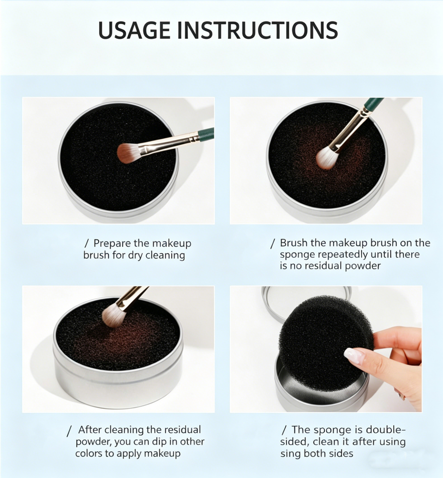 Caja Limpiadora de Brochas de Maquillaje Portátil de Última Tendencia, Herramienta de Limpieza en Seco con Esponja, Estuche de Limpieza Rápida para Brochas de Sombra de Ojos, Sin Necesidad de Lavar, Personalizable