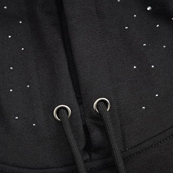 Sudadera con capucha de moda para hombre con pedrería, mezcla de algodón y poliéster, diseño de cristales en forma de lágrima, con cordón en el bajo, top de moda