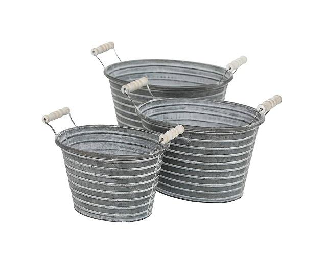 Maceta de flores de Metal galvanizado de forma redonda de tendencia para jardín, hogar, Patio, macetas y macetas para exteriores