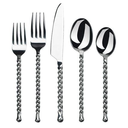 Juego de Cubiertos de Acero Inoxidable Plateado de Moda, Ecológico, Apto para Lavavajillas, Diseño Único para Restaurante/Hotel, Hecho a Mano