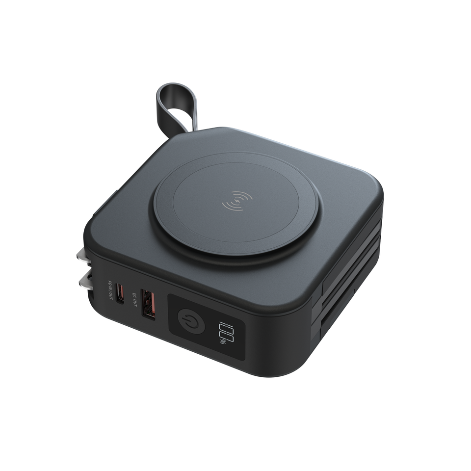 Apoyo de Carga rápida, Carga inalámbrica, Magnético, Alta velocidad, Pantalla digital, Construido en cable, Portátil, Protección, Recargable, PD de carga, Carga rápida, Cables incorporados, Con soporte de escritorio, Enchufe de CA incorporadoFunción