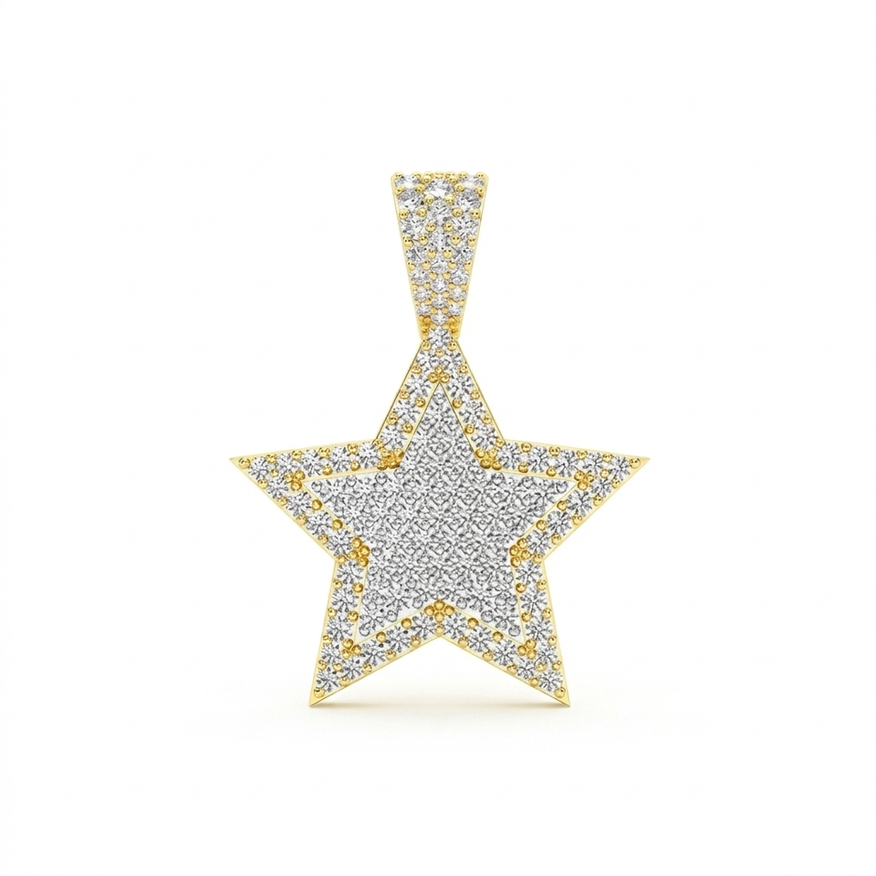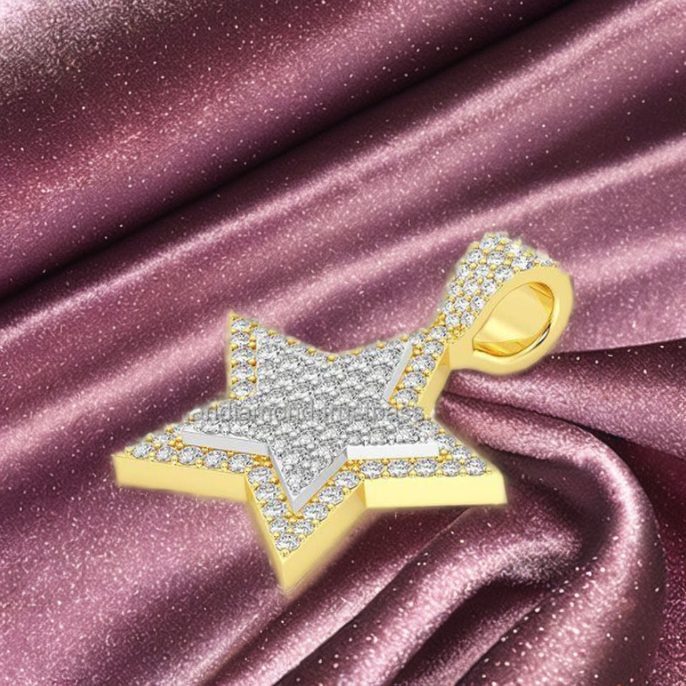 Collar con Colgante de Estrella de Cinco Puntas de Dos Capas en Oro Sólido de 10K con Diamante Cultivado en Laboratorio, Moderno y Personalizado, para Unisex, Regalo de Cumpleaños/Aniversario