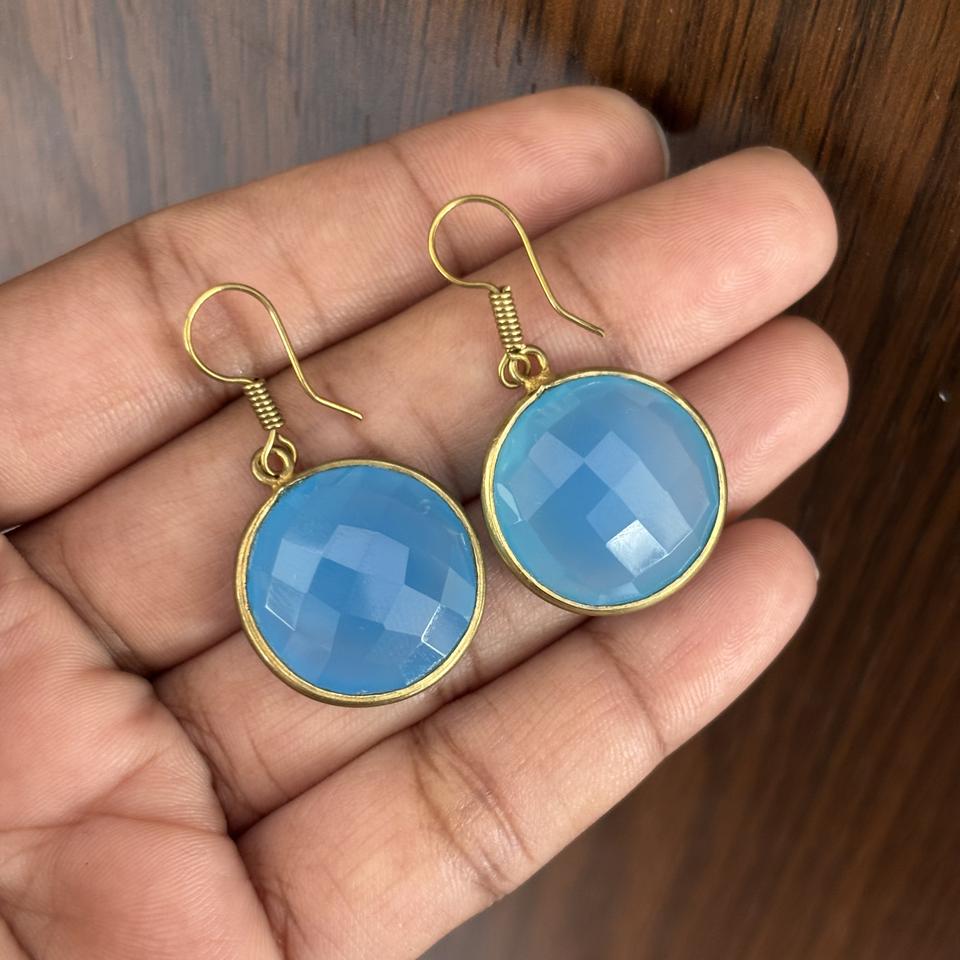 Nombre del producto:Pendientes Calcedonia Chapado en Oro 18K