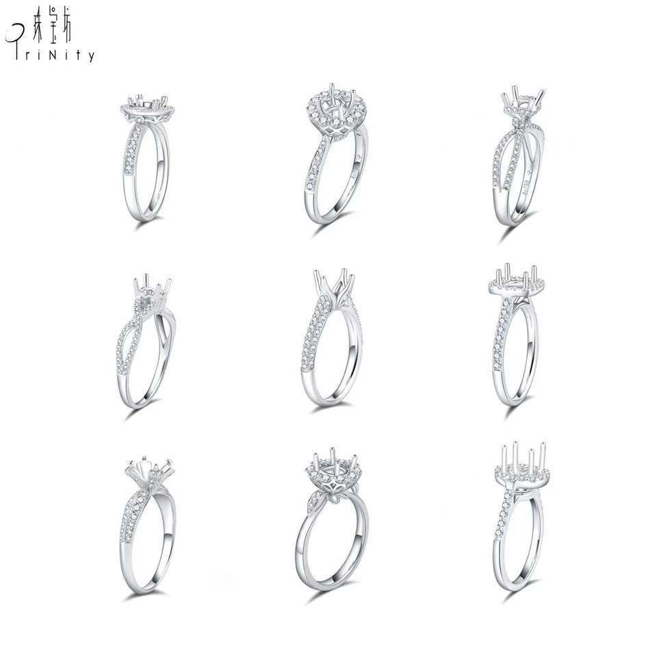 18K White Solid Gold Semi Mounting Diamond Ring Gift Set