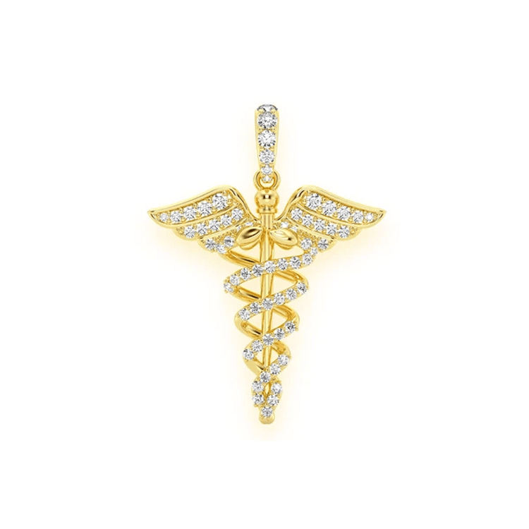 name or words:iced 925 silver custom Caduceus Medical Moissanite Diamond Pendant