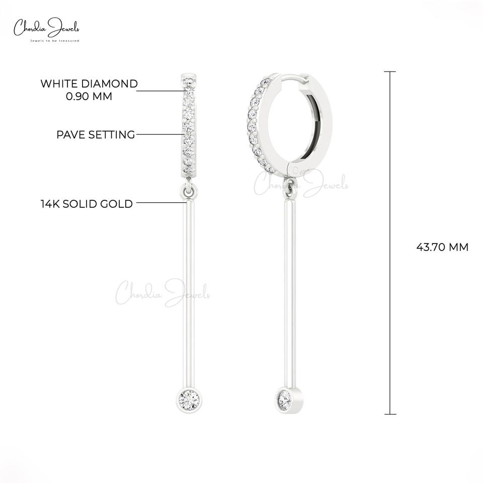 Pendientes de Aro con Diseño de Barra en Oro Sólido de 14K y Diamantes Blancos Naturales de 0.40CTW, con Cierre de Bisagra, Joyería Fina para Mujer