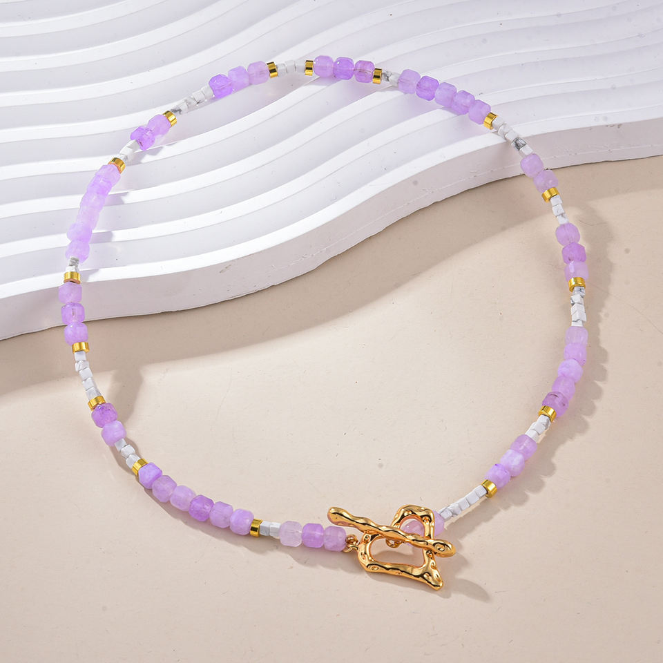 Collar de cuentas de jade de lavanda de estilo bohemio de moda con cierre de tono dorado para trajes diarios Collares de cuentas de moda