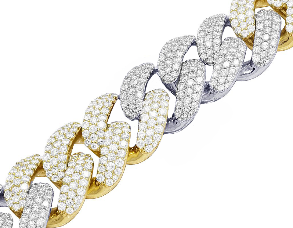 Trendy Charm Two-Tone Plated S925 Sterling Silver Round Moissanite Cadena de eslabones cubanos para hombres-Regalo de boda