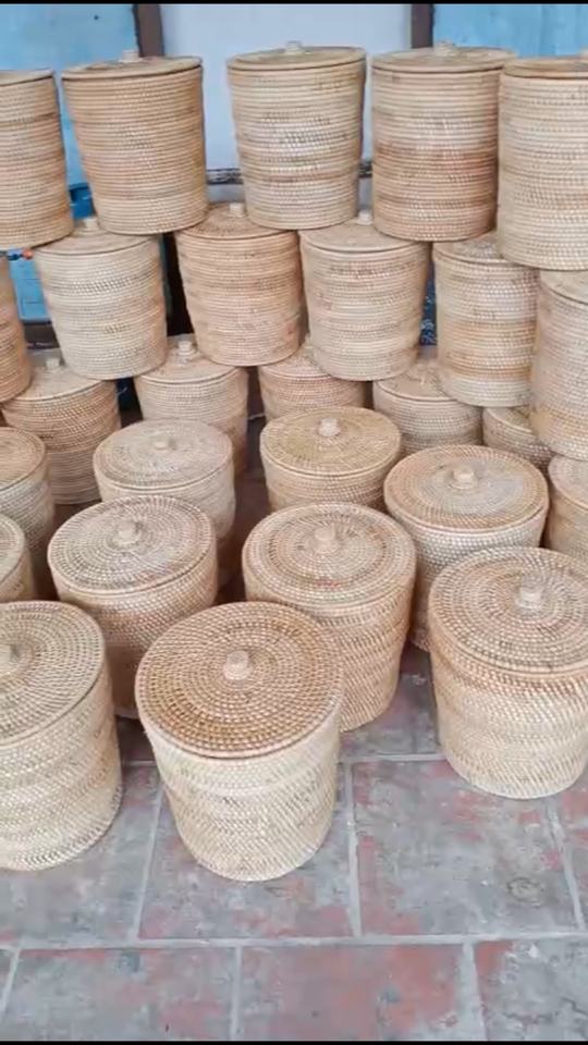 Cestas Redondas Plegables Hechas a Mano, Modernas Cestas de Mimbre y Ratán para Almacenamiento de Ropa, Decoración del Hogar y Organización, con Tapas