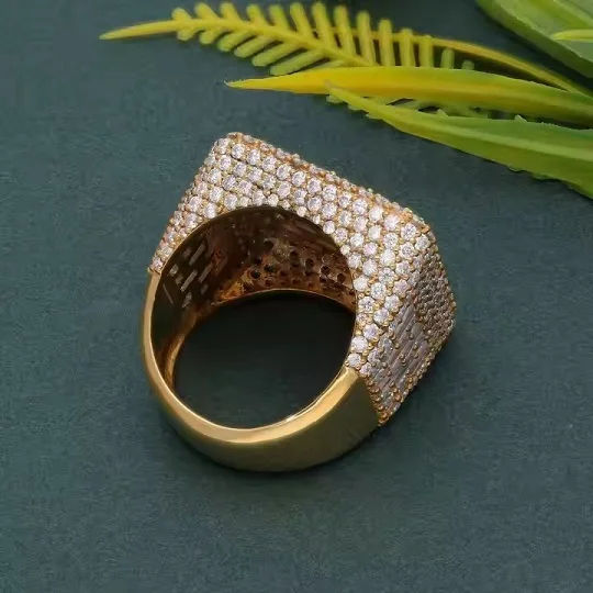 Colección de moda 925 plata esterlina Vvs Moissanite diamante Hip Hop anillo fabricante hombres joyería personalizada anillo helado