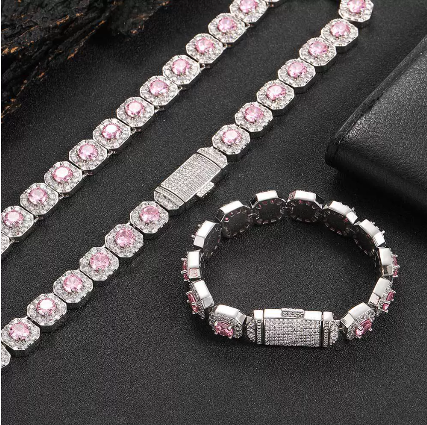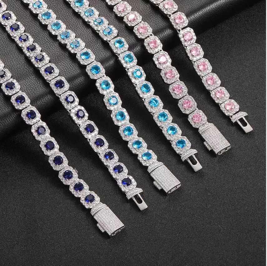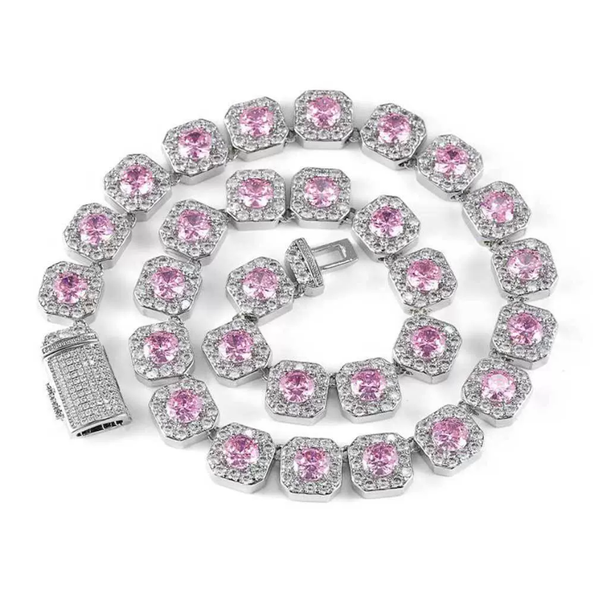 Collar con cierre de tapa abatible de cadena de azúcar de roca de diamante colorido de moda para estilo HipHop Unisex con diseño único