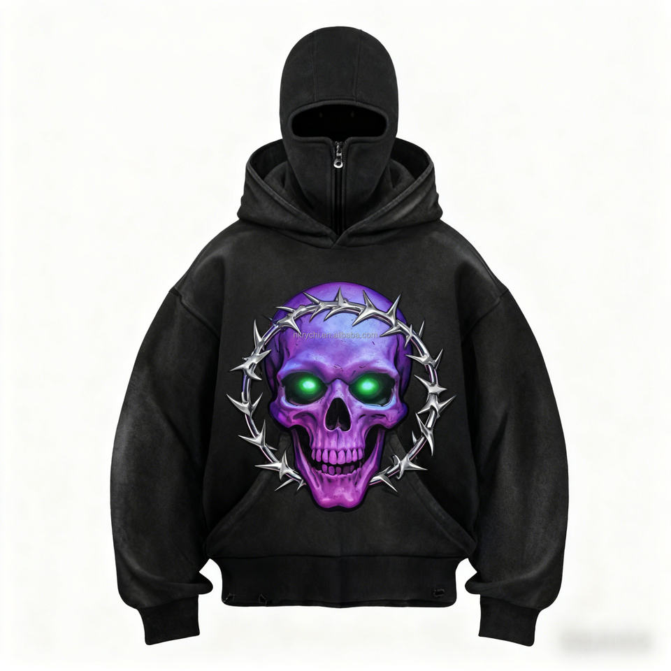 Sudadera con Capucha Unisex de Forro Polar Grueso, Ecológica, 100% Algodón, 330g, con Cierre y Bordado, Impresión DTG DTF Personalizada de Moda
