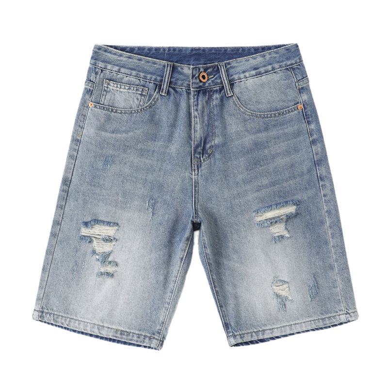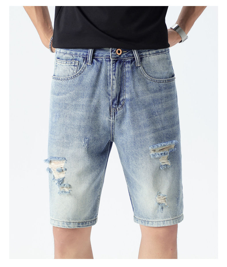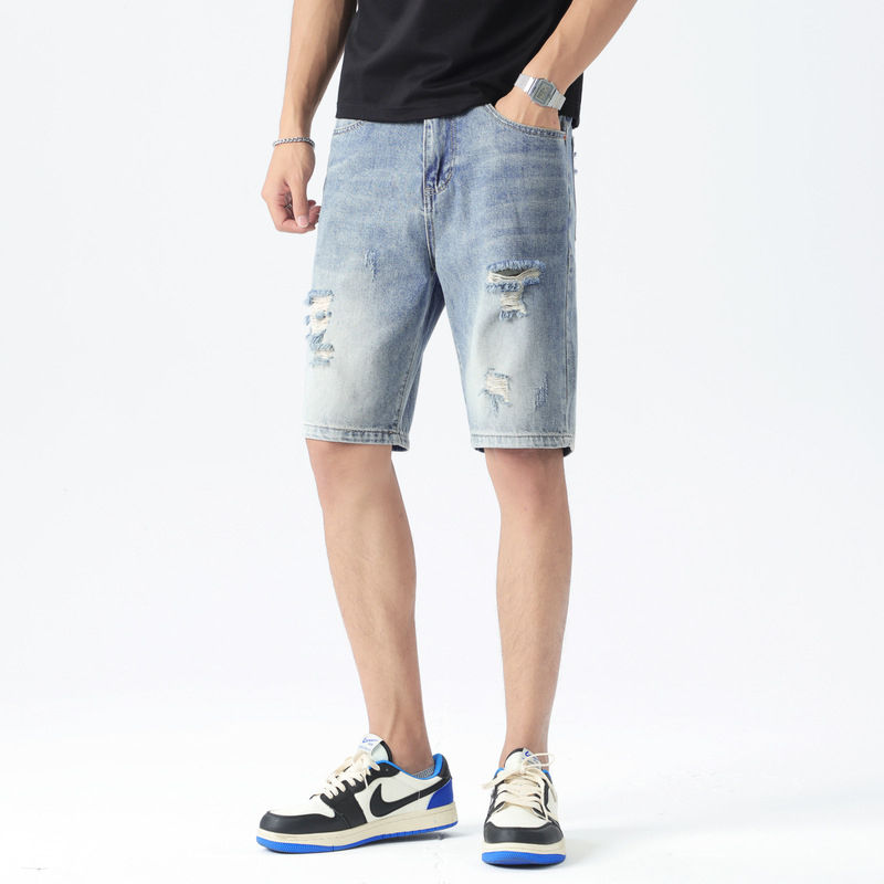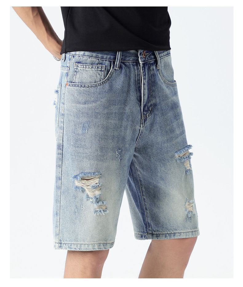 Pantalones Cortos Vaqueros con Parches de Cruz Gótica Personalizados a la Moda, de Alta Calidad, Estilo Punk Rock Desgastado para Hombre
