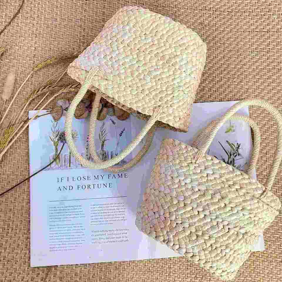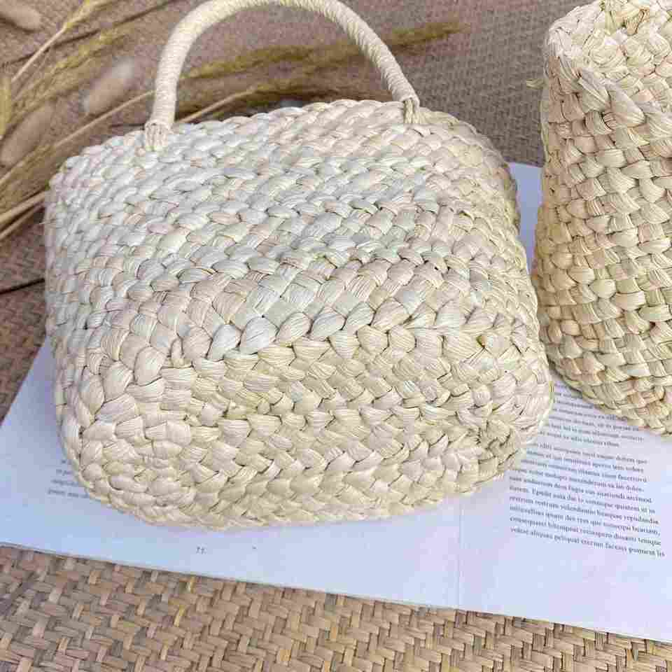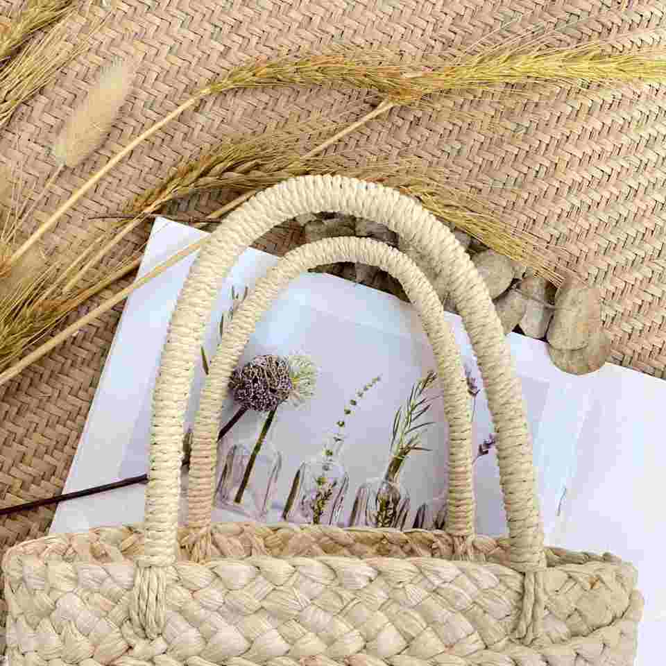 Bolso de Mano Tipo Cesta Pequeño, Moderno y Bonito, Estilo Fotográfico, Mini Bolso Casual de Verano, Bolso de Paja Natural para Mujer, Playa