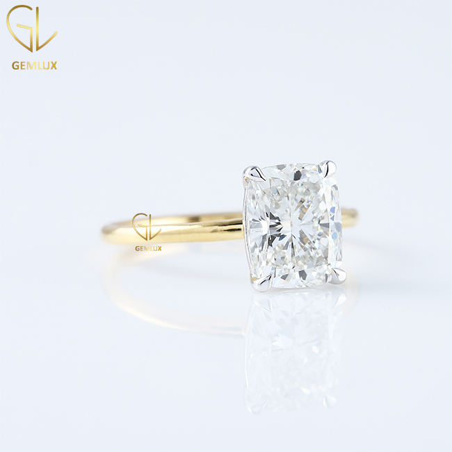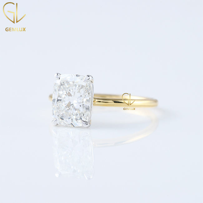 Diseño de moda 2 CT Radiant Cut F VS1 Radiant Cut Labgrown Diamond Joyería fina Anillo de compromiso solitario para mujeres
