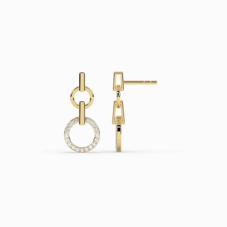 Pendientes Geométricos Circulares con Diamantes Cultivados en Laboratorio, Diseño Moderno, Oro de 18k, Joyería Fina para Mujer, Certificación IGI, Micro