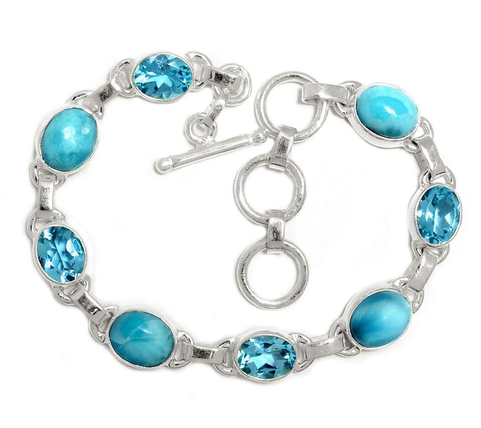 Palabra clave:Larimar & Blue Topaz Gemstone pulsera de plata sólida joyería hecha a mano