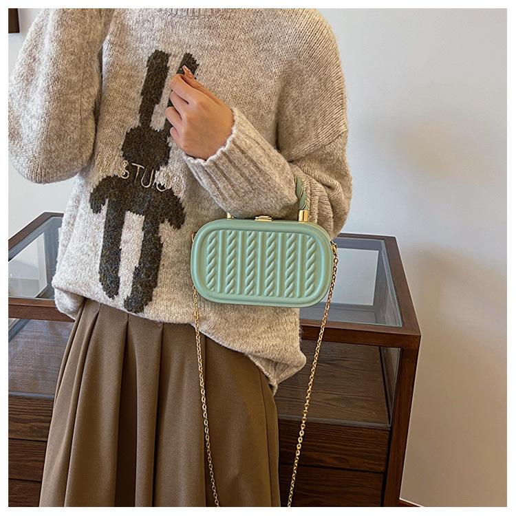Bolso de caja de cadena de moda en relieve de moda, nuevo bolso de mano minimalista, bandolera de hombro texturizada para mujeres y niñas