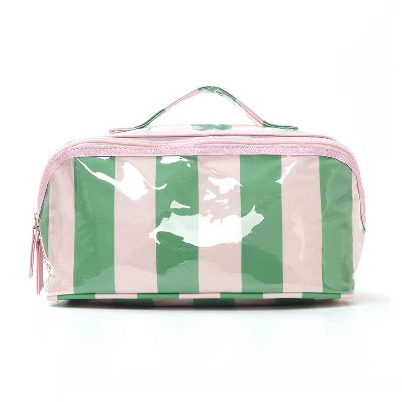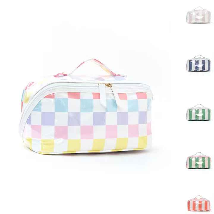 Bolsa de Aseo Expandible Impermeable de PVC con Diseño de Tablero de Ajedrez, Gran Capacidad, Rayas, para Baño