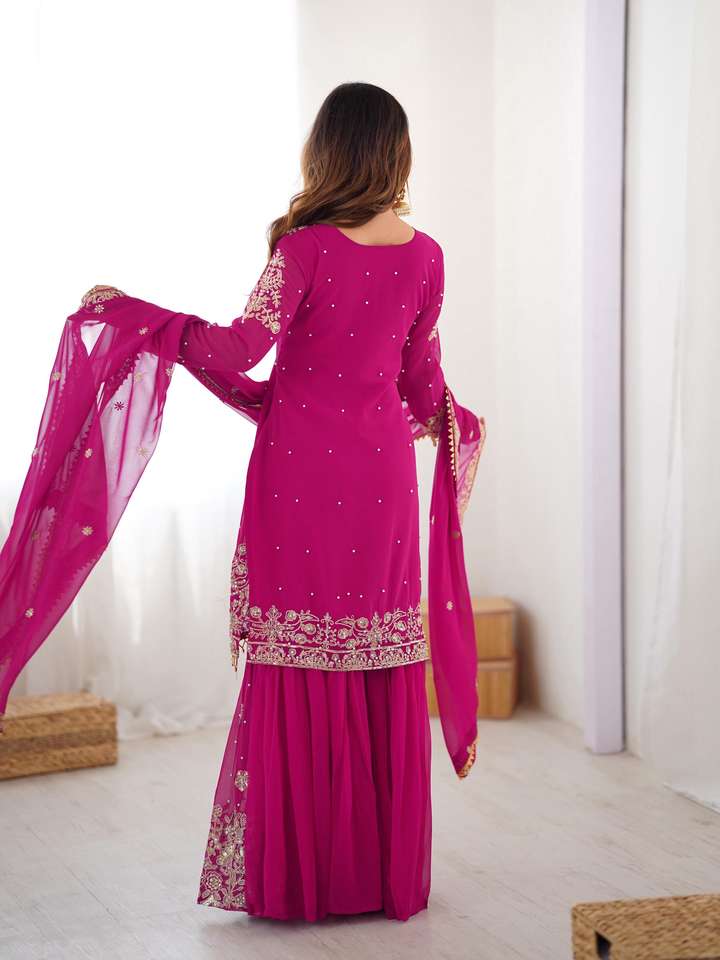 Conjunto de Kurti Sharara de Georgette Sintética de Moda para Mujer con Tela Fluida y Estilo Elegante para Eventos Especiales y Bodas