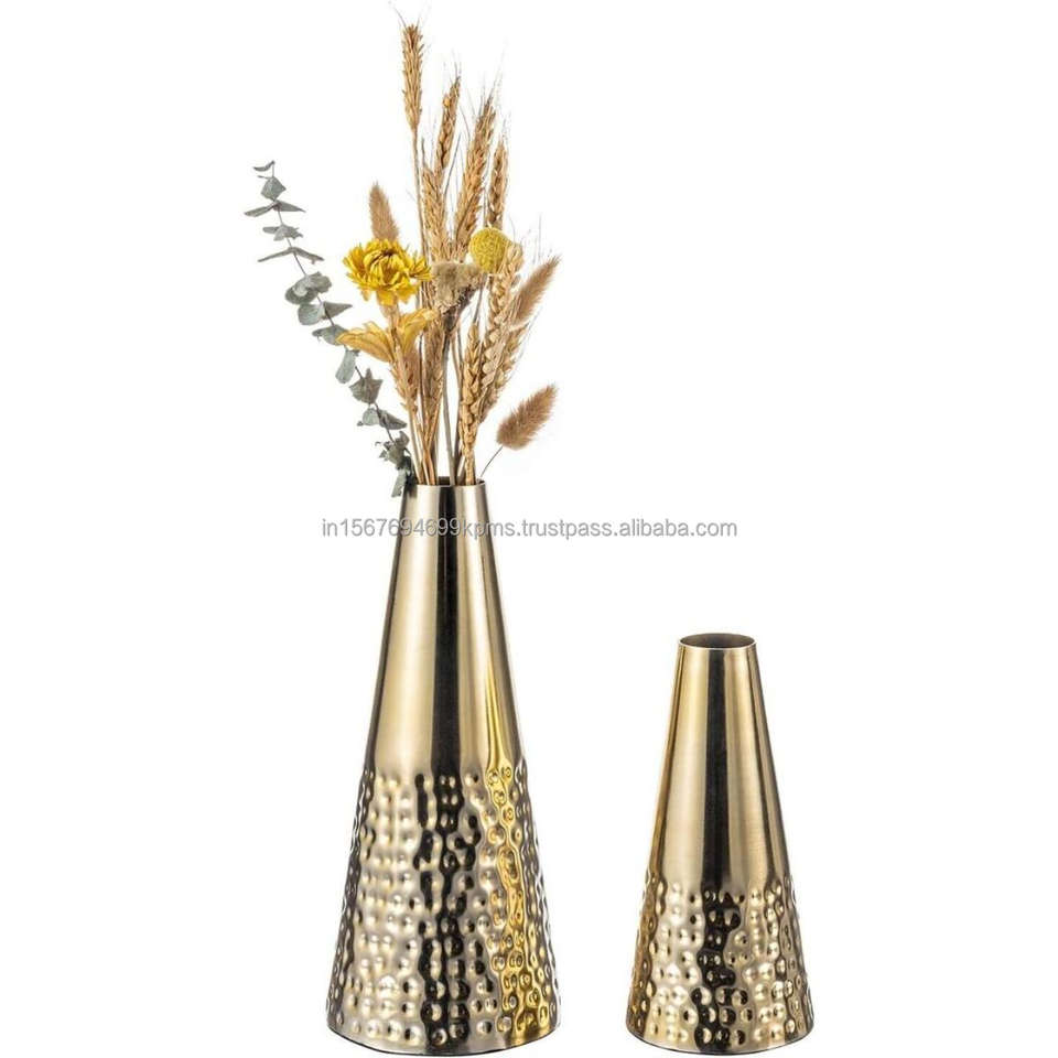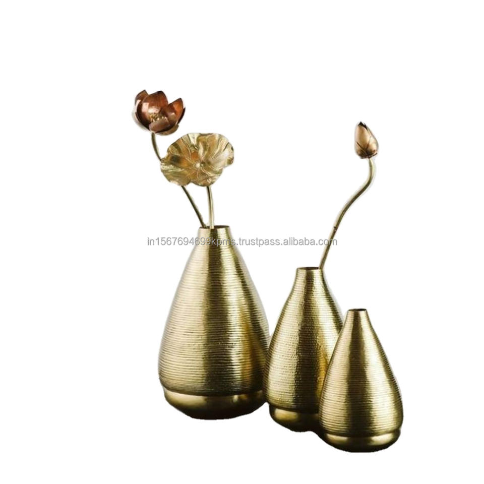 Maceta/jarrones de plantas de flores artificiales de latón de estilo indio independiente de moda, jarrones bohemios de tres juegos, decoraciones de boda