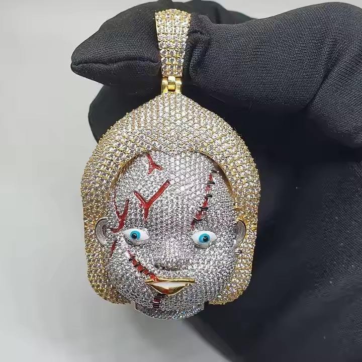 Colgante de Hip Hop Personalizado de Plata de Ley con Incrustaciones Completas de Diamantes de Imitación y Moissanita de Corte Redondo, Diseño de Dibujos Animados, para Raperos