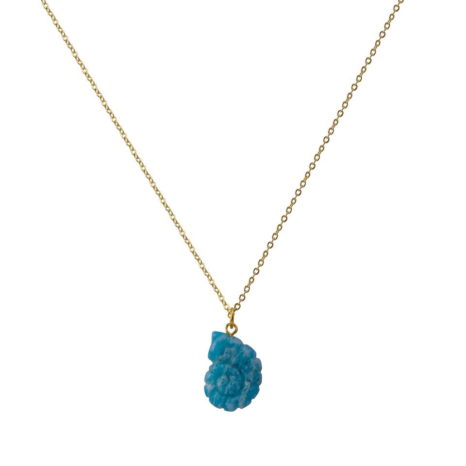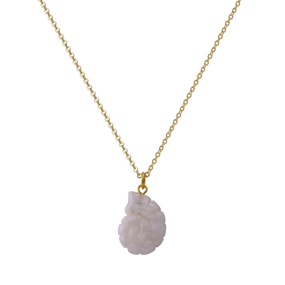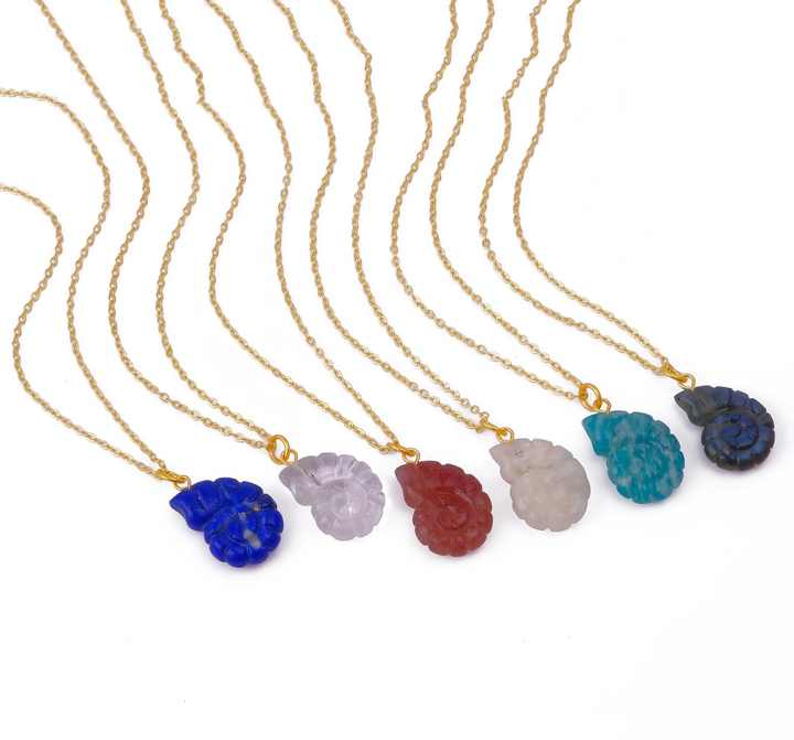 Collar Espiral Tallado con Piedras Preciosas de Moda con Cadena de Latón Chapada en Oro de 18K, Colgante de Concha de Nautilus Tallado a Mano, Unisex