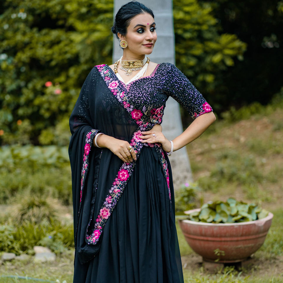 Lehenga work:Plain With Sequins and Thread Embroidery Work Belt