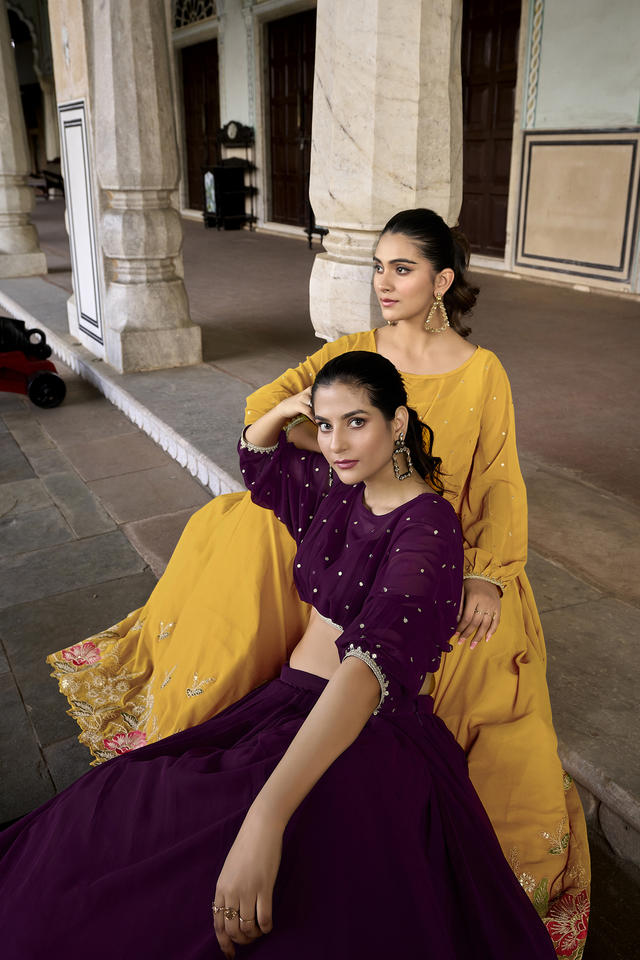 Trabajo Lehenga:Trabajo de bordado de lentejuelas e hilo