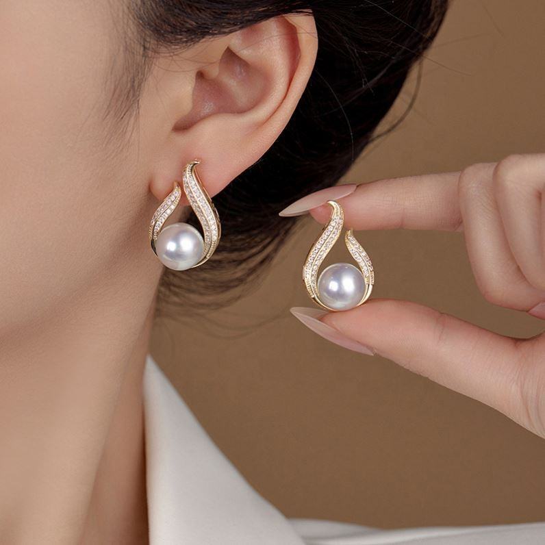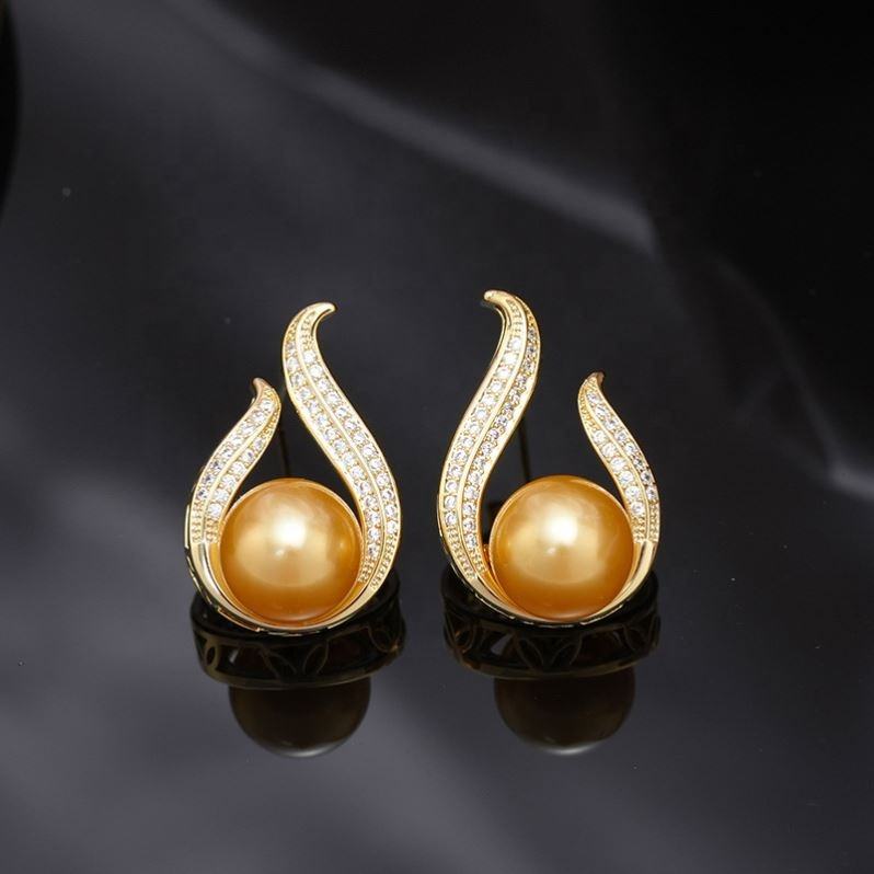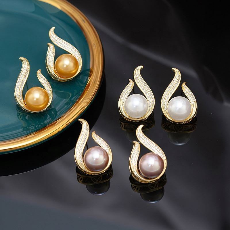 Pendientes de Llama Chapados en Oro y Cobre de Alta Gama, con Incrustaciones de Circonita y Perla, para Personas de Alto Nivel, Joyería Lujosa, Nueva y Popular